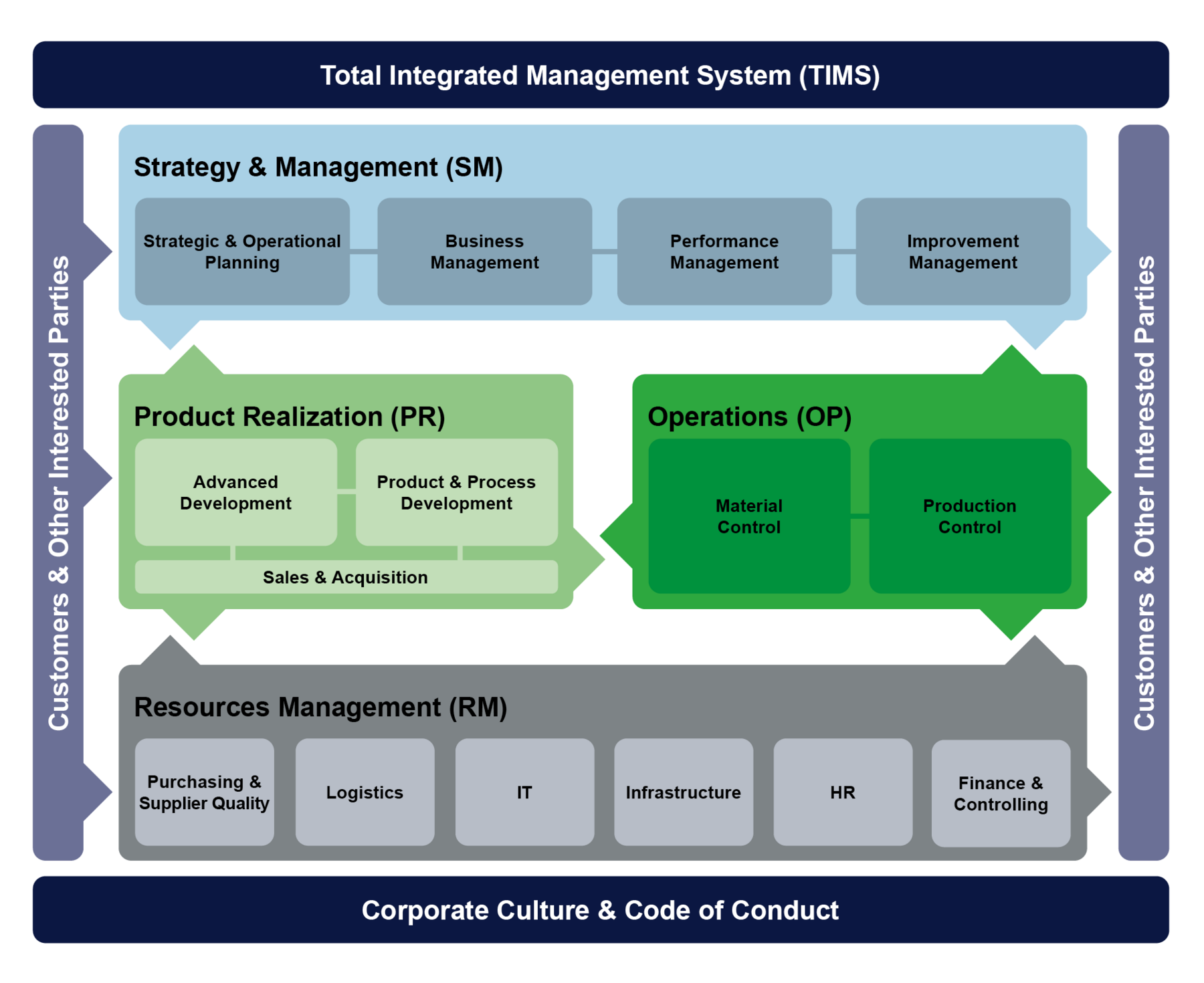 Unser Total Integrated Management System TIMS deckt alle Geschäftsprozesse der Gruppe ab. Es wandelt die Anforderungen von Kunden, Gesetzgebern und anderen Interessengruppen in allen genannten Facetten in Prozesse, Anweisungen und Methoden um. Es gibt also Richtung und Rahmen für die gesamte Gruppe vor. Alle Standorte der AUNDE Group sind mit TIMS verbunden und arbeiten ständig daran, die Konformität und Unternehmensleistung zu verbessern.